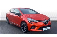 Renault Clio 1.6 E-TECH full hybrid 145 Techno 5dr Auto 5 Door in orange, 7"TFT colour instrumental display, Apple car play/Android Auto, Cruise control + speed limiter, E-call, Easy link navigation with 7"touchscreen+4x20W amplifier+FM DAB double tuner, sound auditorium, 2