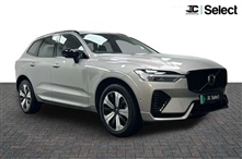 Volvo XC60 2.0 T6 [350] RC PHEV Plus Dark 5dr AWD Geartronic 5 Door in silver, 12.3"Progressive Driver Display, 360 degree surround view parking camera with side proximity sensors, 9"centre console touch screen, Adjustable steering wheel force, Apple carplay (wired), Bluetooth h