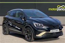 Renault Captur 1.6 E-TECH Hybrid 145 Iconic Edition 5dr Auto 5 Door in black, 7"TFT Driver information display, Cruise control + speed limiter, eCall emergency call system, Eco mode, EV button to activate pure mode, Gear change indicator, Lane departure warning system, Lane kee