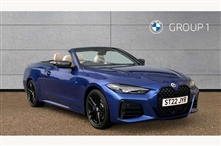 BMW 4 Series Convertible M440i xDrive MHT 2dr Step Auto 2 Door in blue, Active guard plus, Attentiveness assist, Auto start-stop, BMW ConnectedDrive online services, BMW iDrive controller on centre console, BMW Live Cockpit Professional Nav with 12.3"instrument display +