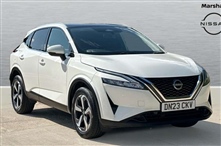 Nissan Qashqai 1.3 DiG-T MH 158 N-Connecta 5dr Xtronic 5 Door in white, Android auto/Apple CarPlay (Wired), Blind spot warning, Drive modes (sport, normal, eco), Electric speed sensitive power steering, Emergency and breakdown call, Full Digital 12.3"TFT Digital Combimete