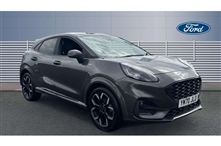 Ford Puma 1.0 EcoBoost Hybrid mHEV ST-Line 5dr DCT 5 Door in black, Driver impairment monitor, Emergency call service, Ford easy fuel, Full digital 12.3"instrument cluster, Lane keeping aid with lane departure warning, Power assist steering, Power start button, Rear p