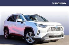 Toyota RAV4 2.5 VVT-i Hybrid Excel 5dr CVT 2WD 5 Door in white, 10.5"Multimedia display screen, 12.3"multi information screen, Adjustable speed limiter, Blind spot monitor and safe exit assist, Bluetooth telephone connectivity, Clock audio and meter, Colour multi
