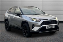 Toyota RAV4 2.5 VVT-i Hybrid Dynamic 5dr CVT 5 Door in silver, 7"TFT multi information display, Analog tachometer, Apple car play and Android auto, Blind spot monitoring with rear cross traffic alert, Bluetooth system, Cyclist Detection, Drive mode selector, eCal