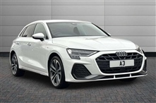 Audi A3 40 TFSI e S Line 5dr S Tronic 5 Door in white, Adjustable speed limiter, Audi drive select, Audi smartphone interface with app store includes wireless Apple carplay, Android auto and Amazon alexa integration, Audi virtual cockpit plus - 12.3"full