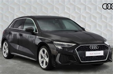 Audi A3 35 TFSI S Line 5dr 5 Door in black, Audi drive select (Auto, Comfort, Dynamic, Efficiency and Individual), Audi smartphone interface, Audi Virtual Cockpit - 10.25"digital and colour instrument cluster, Automatic start/stop system with r