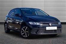 Volkswagen Polo 1.0 TSI Life 5dr DSG 5 Door in black, Adaptive cruise control with follow-to-stop and speed limiter, Advanced driver attention and drowsiness monitor, Bluetooth mobile phone interface, Dynamic road sign display, Emergency call service, Po