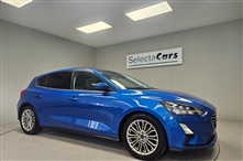 Ford Focus 1.0 EcoBoost Titanium 5dr 5 Door in Blue, Driver Airbag, EDL Traction Control, PAS, Front Passenger Airbag, Quickclear Heated Windscreen, Rain Sensor, Tailgate Wash/wipe, Rev Counter, Heated Rear Window, Cloth Upholstery, Service Interval Ind