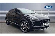 Ford Puma 1.0 EcoBoost Hybrid mHEV Titanium 5dr 5 Door in black, Driver impairment monitor, Emergency call service, Ford easy fuel, Full digital 12.8"instrument cluster, Lane keeping aid with lane departure warning, Power assist steering, Selectable drive modes(Nor