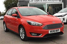 Ford Focus 1.5T EcoBoost Titanium Hatchback 5dr Petrol Auto Euro 6 (s/s) (150 ps) in Red, Features Include: , 16in alloy wheels - 10 spoke, chrome finish on upper door line, door mirrors - heated - electric - integrated side indicators - body coloured, front grille - chrome finish, lockin