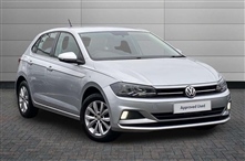Volkswagen Polo 1.0 TSI 95 SE 5dr 5 Door in silver, App-Connect, Bluetooth Telephone preparation, Driver alert system, Multifunction colour display, PAS - speed related, Service interval indicator, Trip computer, Warning buzzer and light for front seat