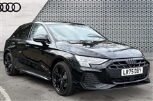 Audi A3 35 TFSI Black Edition 5dr S Tronic 5 Door in black, Adjustable speed limiter, Audi drive select, Audi smartphone interface with app store includes wireless Apple carplay, Android auto and Amazon alexa integration, Audi virtual cockpit plus - 12.3"full