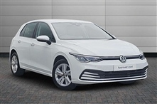 Volkswagen Golf 1.5 TSI Life 5dr 5 Door in white, Adaptive cruise control (ACC) with speed limiter and front assist (reacting to vehicles pedestrians and cyclists), Car2X communication, Digital cockpit pro - 10.25"high resolution TFT dash display scr