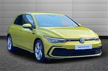 Volkswagen Golf 2.0 TDI 150 R-Line 5dr DSG 5 Door in yellow, Adaptive cruise control (ACC) with speed limiter and front assist (reacting to vehicles pedestrians and cyclists), Car2X communication, Digital cockpit pro - 10.25"high resolution TFT dash display scr