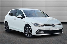 Volkswagen Golf 1.5 TSI Style Edition 5dr 5 Door in white, Adaptive cruise control (ACC) with speed limiter and front assist (reacting to vehicles pedestrians and cyclists), Car2X communication, Digital cockpit pro - 10.25"high resolution TFT dash display scr