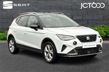 Seat Arona 1.0 TSI 110 FR 5dr 5 Door in white, 'Lights On' Reminder warning buzzer, 8"Digital cockpit, Digital clock, E-call, Electric speed sensitive power steering, Full Link Smartphone Integration with Mirror Link, Apple Car Play, Google Androi